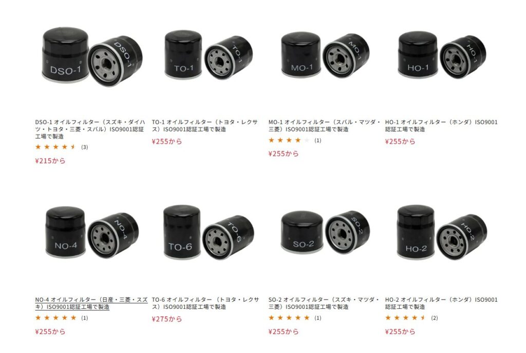 例としてオイルフィルターを紹介します