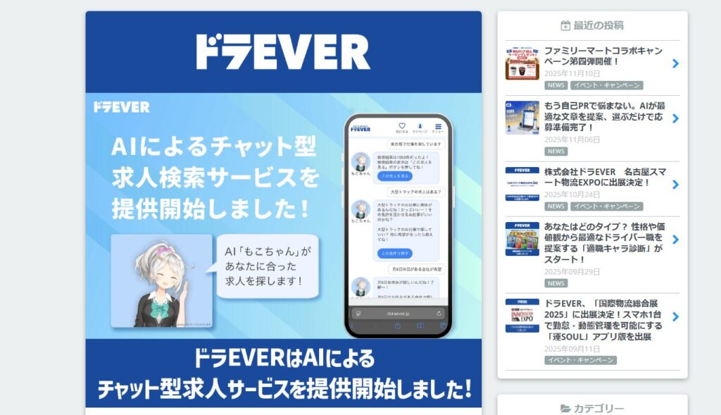 ドライバー向けの転職サイトとして、特に有名なのが今回紹介する、ドラEVERです