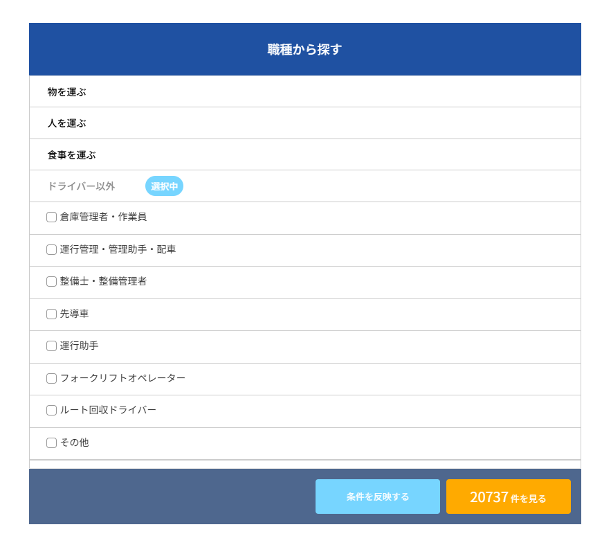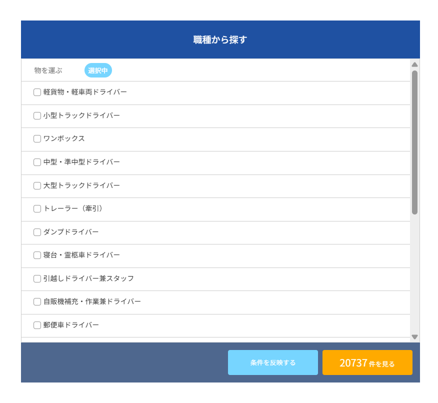 上の画像で表示されているのは、「物を運ぶ」というカテゴリーのドライバー職です