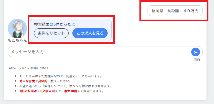 AI型で対話形式で希望の条件を伝えたら、それにこたえる形で条件を提案してくれます