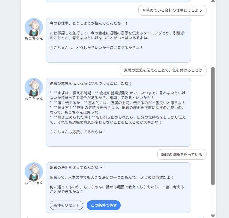 AIによるチャット型求人サービス