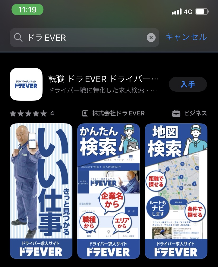 スマホのApp Storeから、検索で「ドラEVER」と入力します