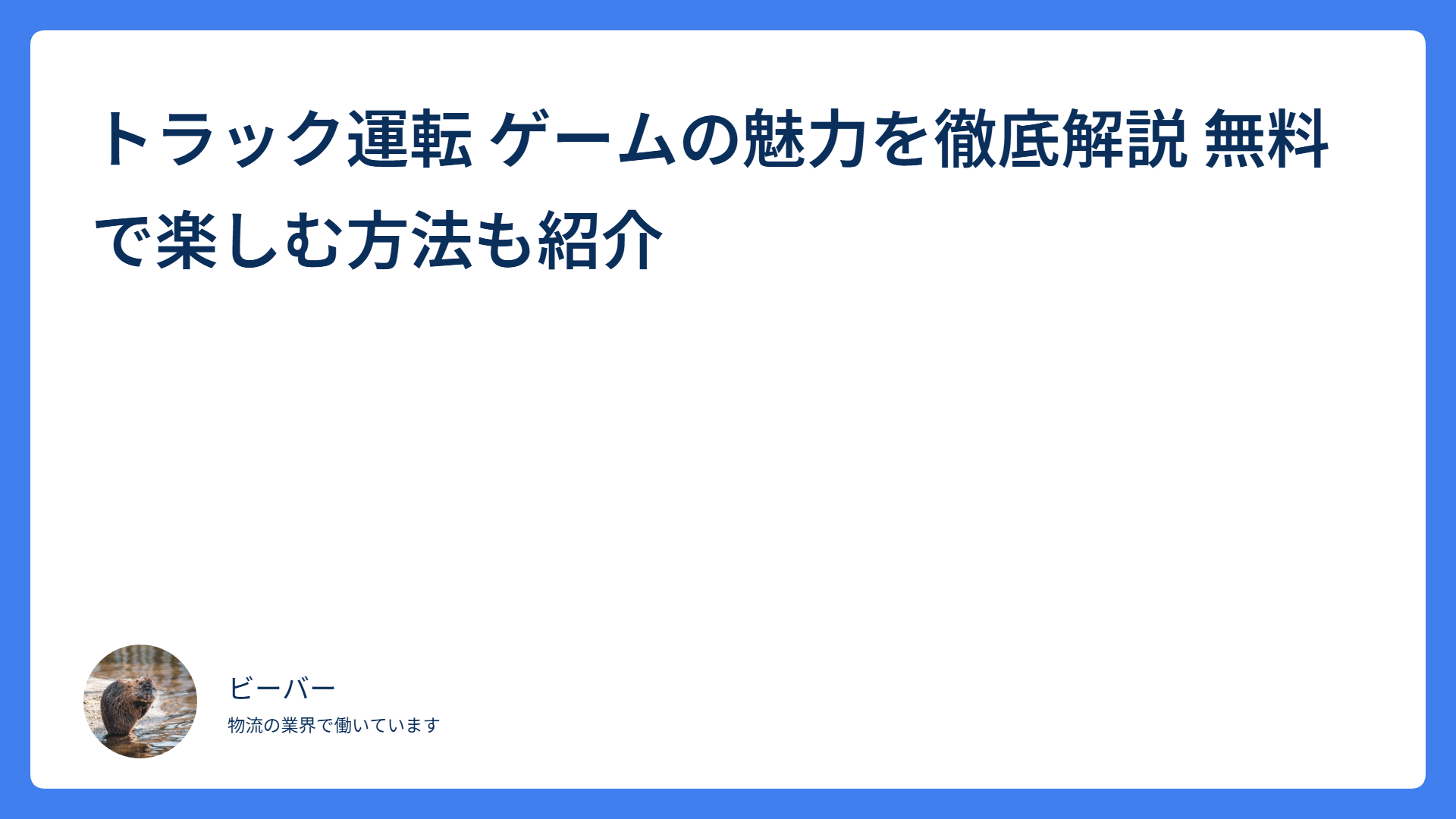 トラック運転 ゲームの魅力を徹底解説 無料で楽しむ方法も紹介